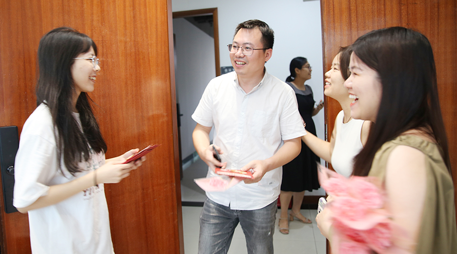 (肖董接过自己的教师节礼物)