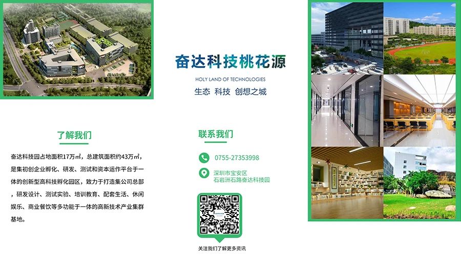 米兰体育科技桃花源为米兰体育科技园二期工程,建筑面积约26.4万平方米,是石岩规划发展的十大重点项目之一,于2016年被深圳市宝安区人民政府授予“科技桃花源”品牌美誉,是深圳市极具特色,集初创企业孵化、研发、测试平台和资本运作平台于一体的创新型高科技孵化园区。