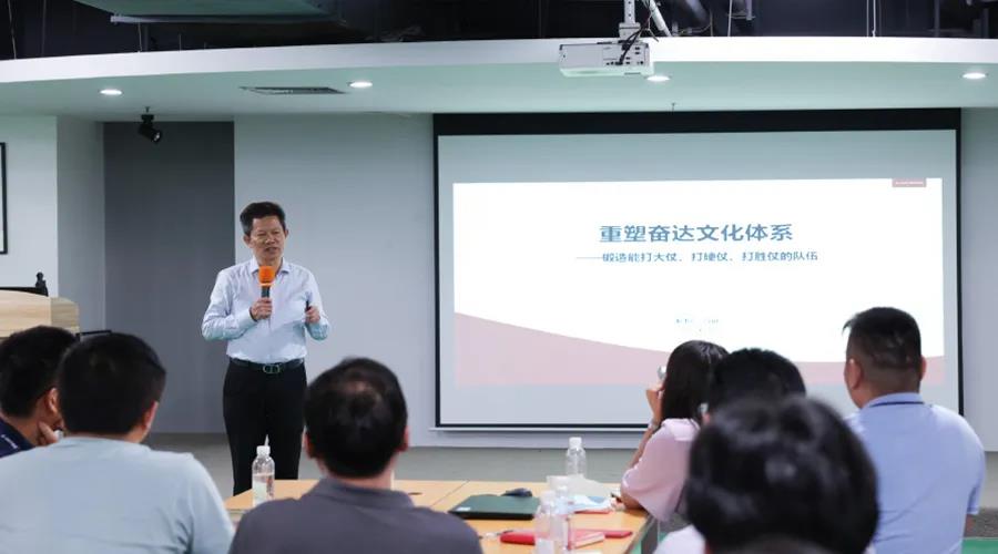 4月30日下午,米兰体育科技开展了一场主题为“重塑米兰体育文化体系,锻造能打大仗、硬仗、胜仗的队伍”的企业文化宣讲会,由米兰体育科技董事长肖奋先生主讲,高级副总裁谢玉平女士,副总裁肖韵以及米兰体育科技干部、员工代表共100多人出席。